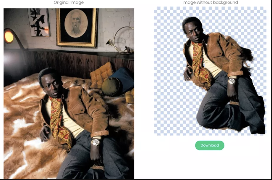 Remove.bg certainly isn’t faultless . Like any magic wand tool, it gets a bit confused when faced with fuzzy boundaries between foreground and background. You can see that in the picture of Elon Musk at the top of the article (check out his missing eye-chunk) and with this picture of Miles Davis lying on a furry bedspread: